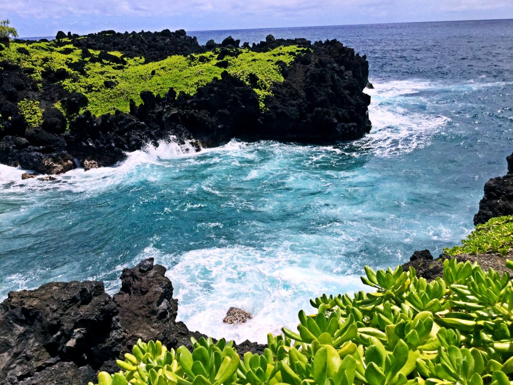 千年火山岩浆礁石与绿油的植物。。。活的和死的,构成一幅美丽图画