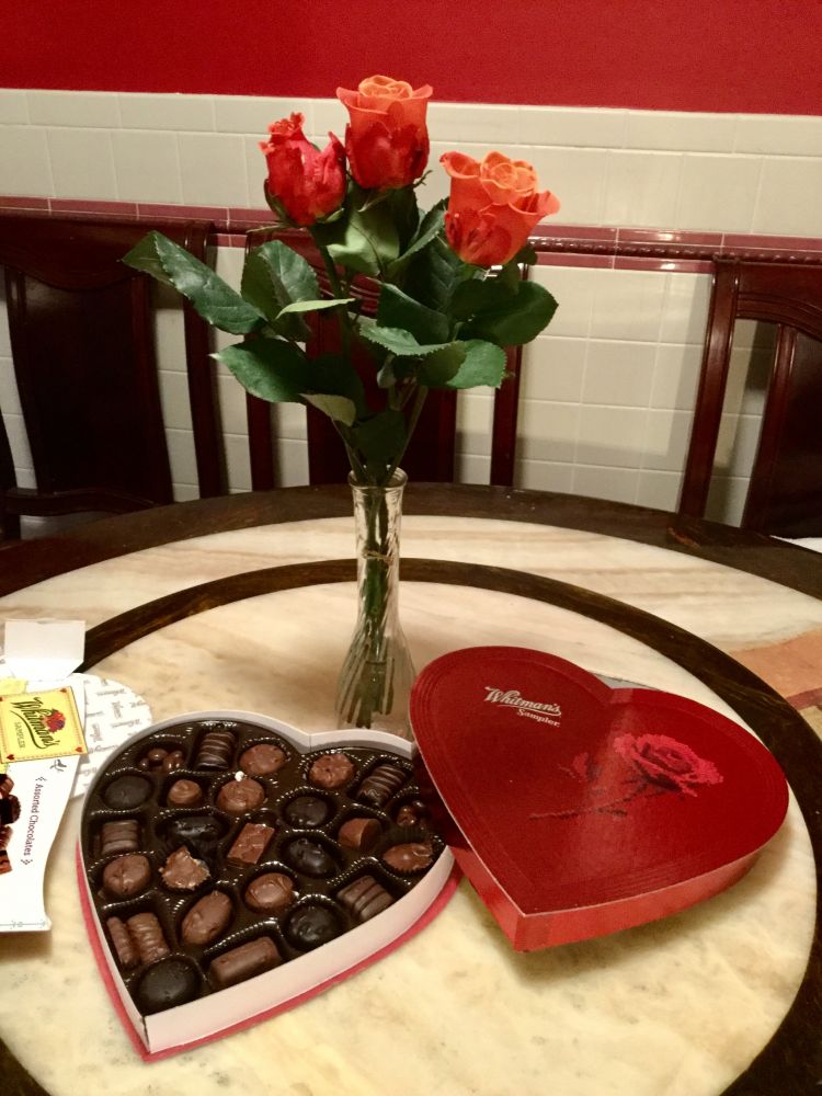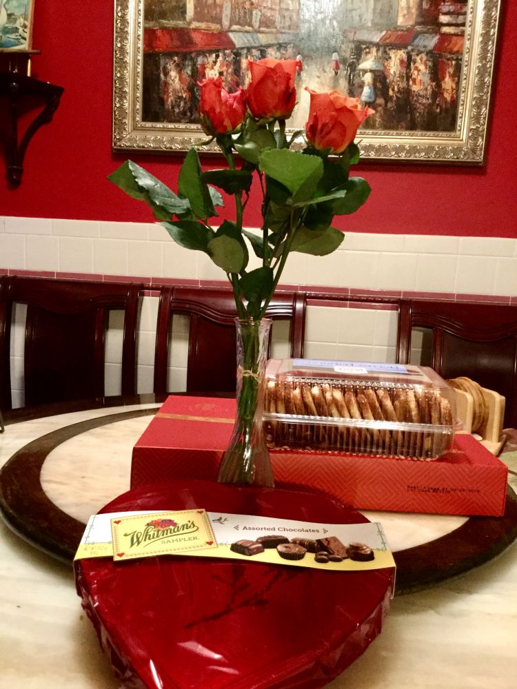 哈。。。敢情他趁我们不在家,也不免俗地跑去附近的店买了花和巧克力。。。-:)