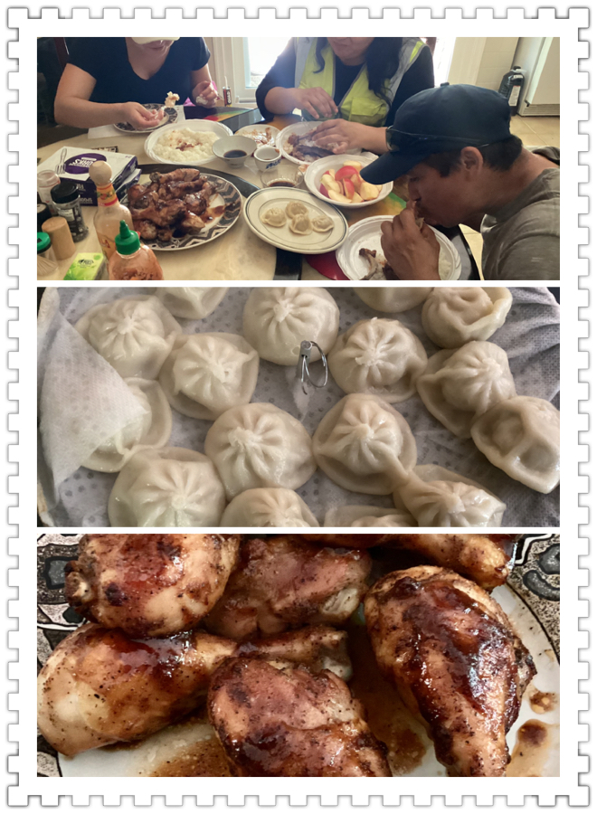 我蒸的小笼包,他们第一次吃小笼包,我得教他们怎么吸吃,不把汤汁浪费了-:)