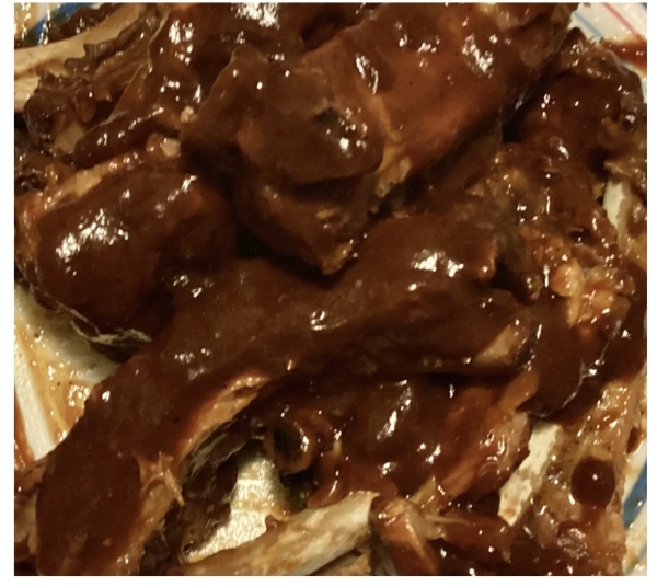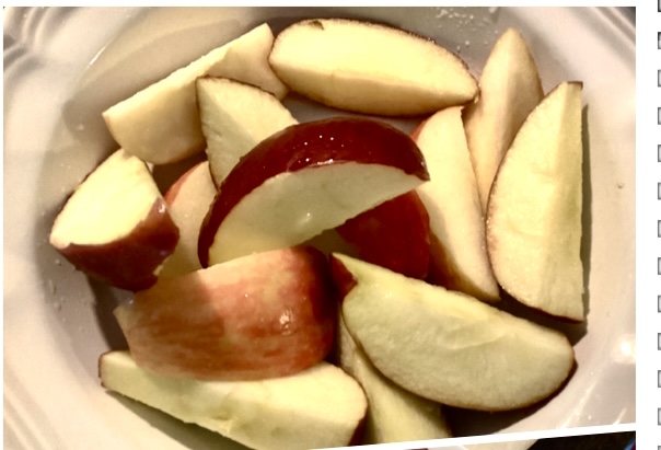老板烤的鸡腿和猪排,我还切了一盘盐水苹果。