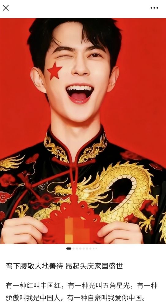 他们甚至用自己的方式怀念他——把于朦胧的脸印在国旗上,他必也在为了祖国的生日真心祝福——那是多欢喜的中国红,配上于朦胧那年年轻英俊喜气洋洋的脸,还能找到比这张四海八荒第一美男子的盛世容颜更配得起国旗的脸吗?