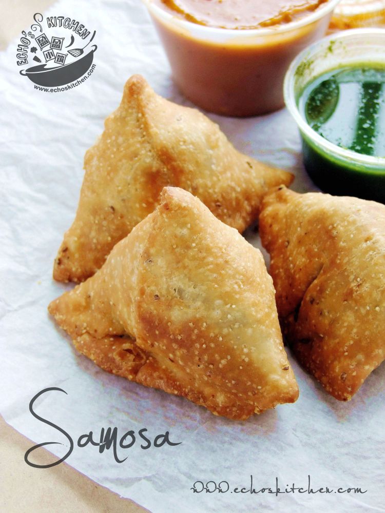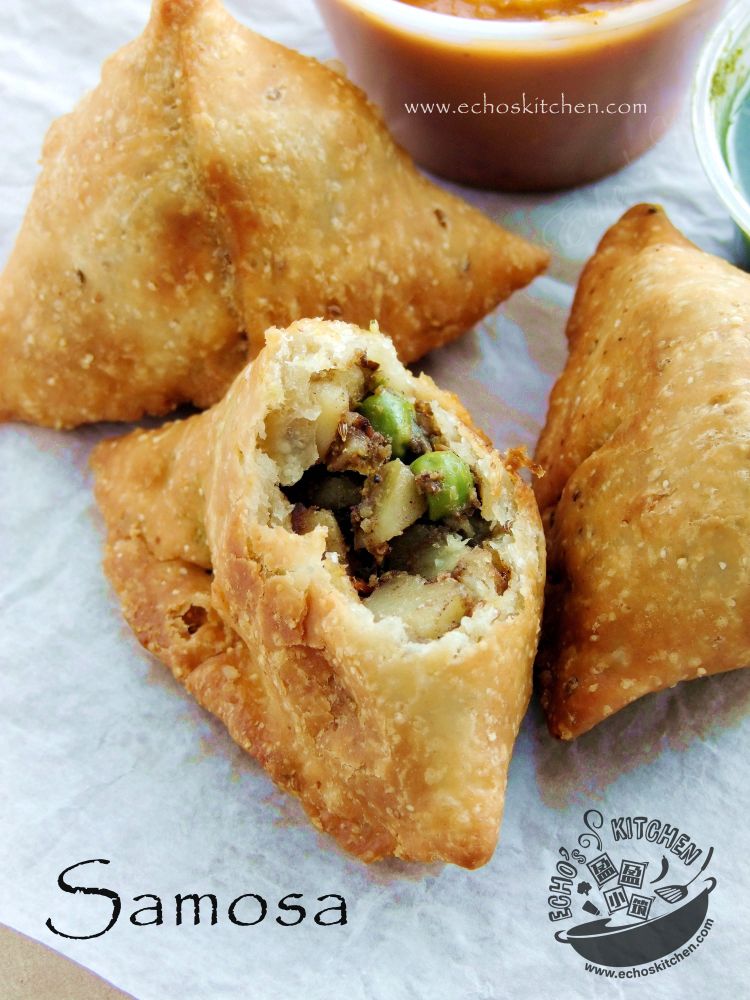 Samosa is a stuffed pastry, a common snack in India, we have a similar version in Malaysia called "curry puff" made in different shape, but tasting as good. Nothing is more enjoyable to have some hot samosa with a cup of tea in a cold, cozy afternoon.