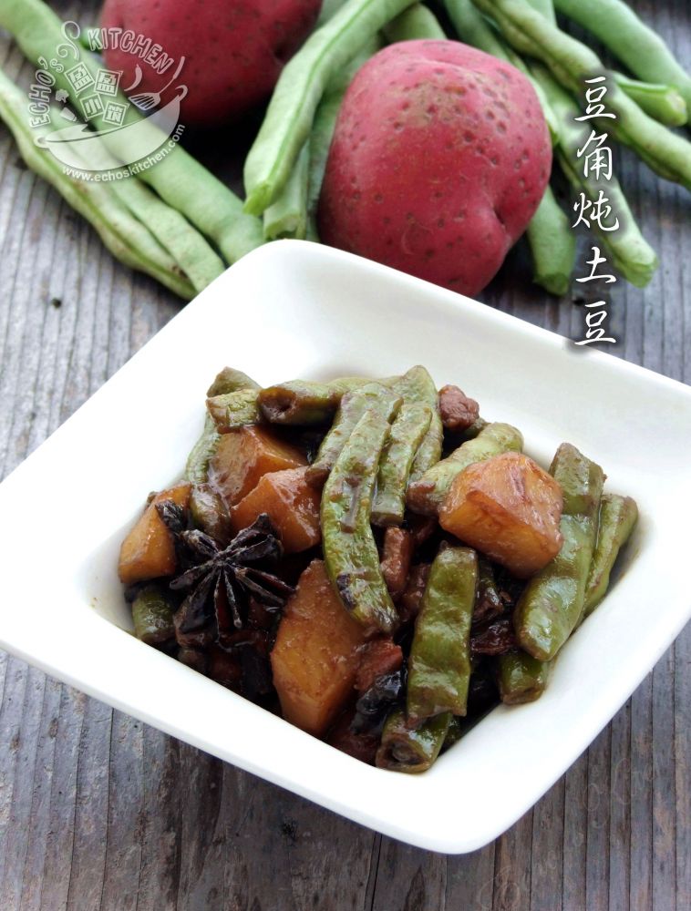 豆角焖面外,在后院的土豆/马铃薯收成时,会买来做这款豆角炖土豆。
