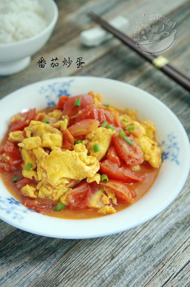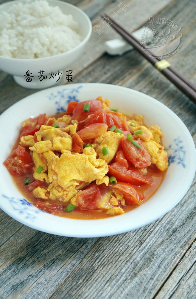 小菜园最近收成的番茄都是一盆盆的,做了一次意面红酱还剩下一堆,都已经红透了,今天拿来两只,加上几根也是院子里摘的青葱,做了这个非常简单的番茄炒蛋。味道真好!