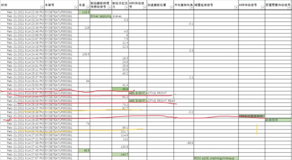 特斯拉4月22日公布了河南刹车失灵事故前5秒的原始数据(如图):