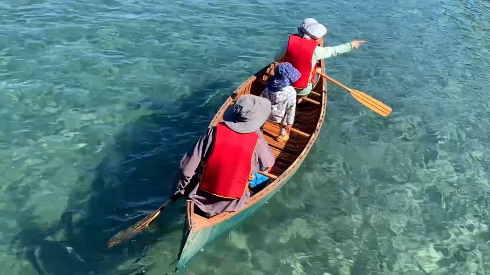 上午修好独木舟下午就去试航。船倒是不漏了,风却太大,差点翻船,明天再说吧。