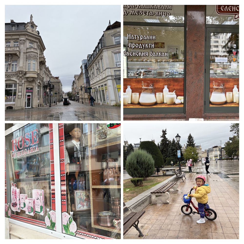6、鲁塞街景。左下:保加利亚以玫瑰花产品闻名,鲁塞街上好几家卖玫瑰香油等特产的商店。回到船上时,船上导游送了每人一小瓶玫瑰精油,真是醇香无比。