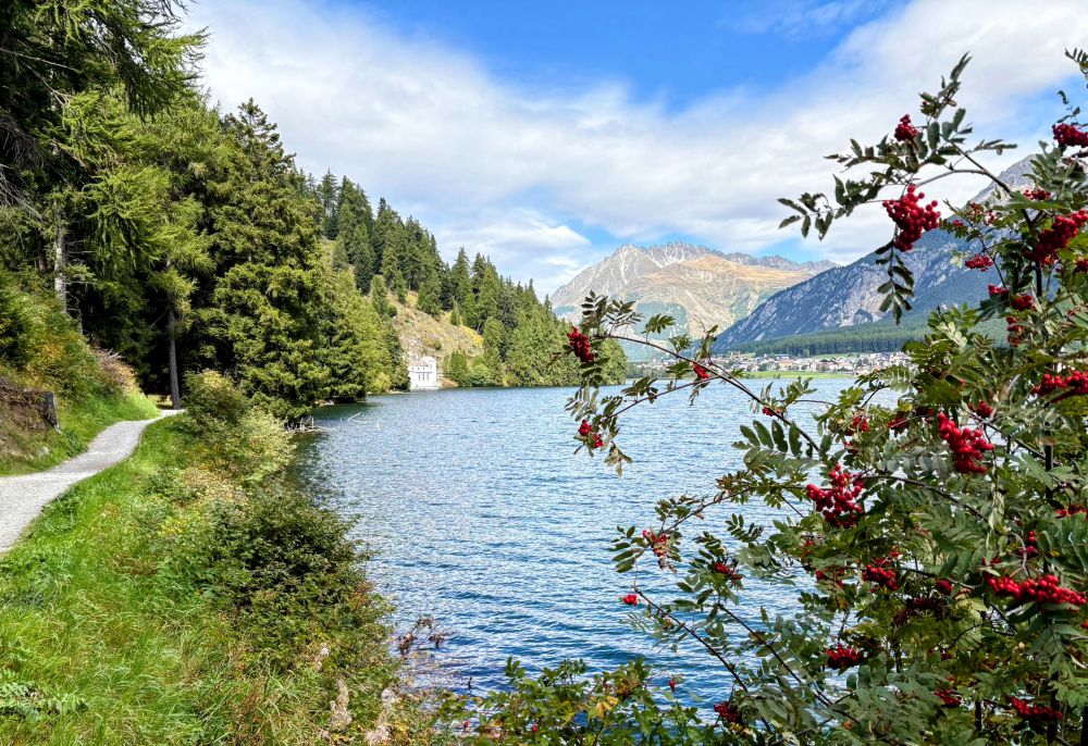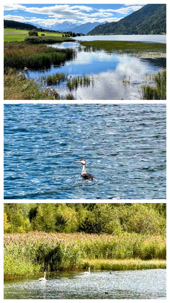 2、上:沿着小湖散步时,抬头就见Ortler;下:湖边小景