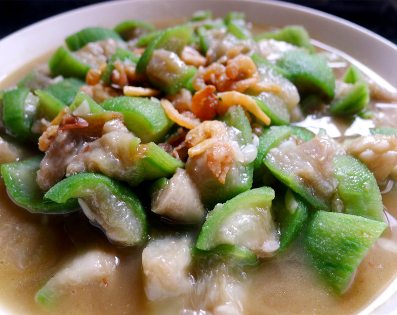 做法: 非常家常, 每家做法可能都不完全一样。 我喜欢先炒香葱油酥和泡好的虾米, 然后再放丝瓜炒,加鸡汤和 一点点鱼露, 盐调味。