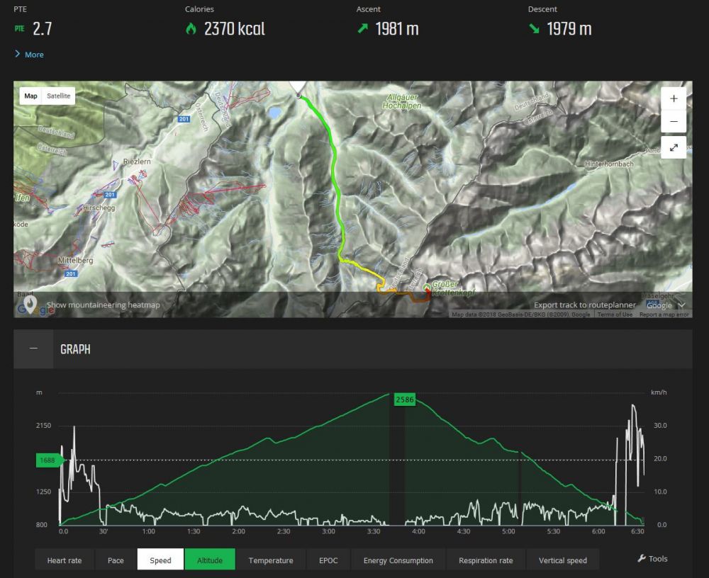 比如:攀登阿尔高山区(阿尔卑斯山脉在德国和奥地利接壤的一部分)最高峰--大蛤蟆头峰。总攀升2000多米,来回30公里,登山车徒步并举,6个半小时完成。