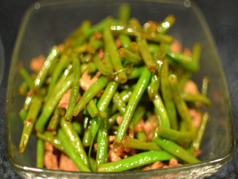 四季豆炒肉(这次我用同一个炒锅,没有洗锅):