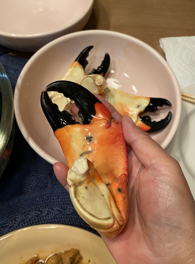 13. 给石蟹钳子一个特写,几乎有巴掌大。这是佛州特产。