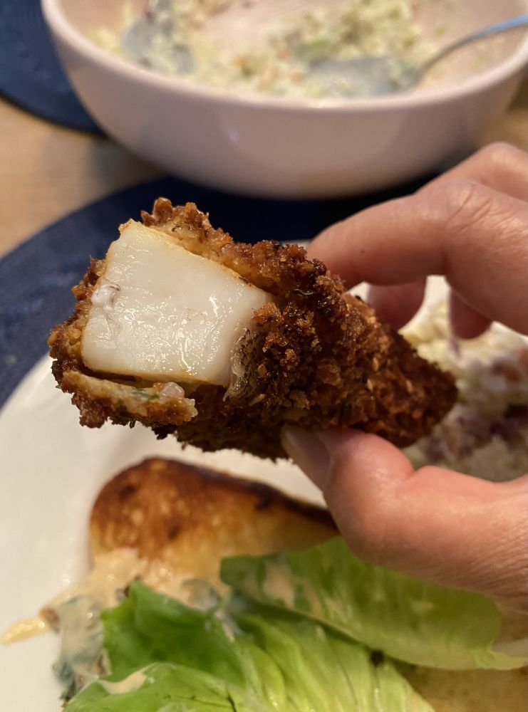 10. 炸着吃大家可能觉得可惜了。但自家做的敷料,比外面的香而且相对健康。鱼肉厚实而有弹性,很好吃。