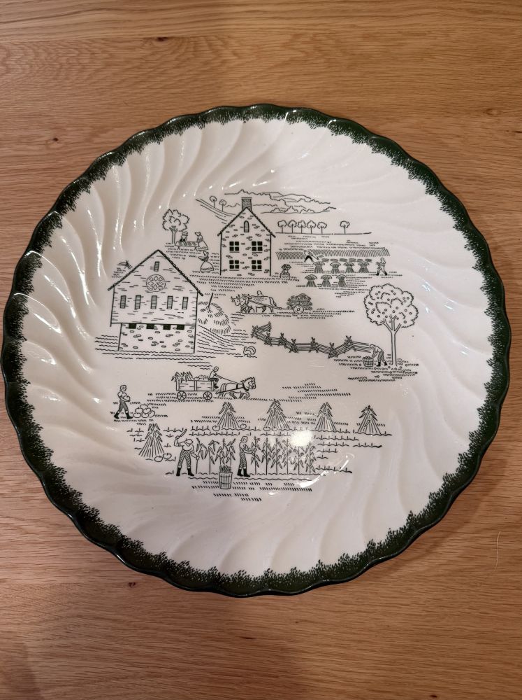 13. 逛了个旧货店,买了一个盘子。喜欢那细细巧巧的图案,画里传统的农耕生活也让我叶公好龙。
