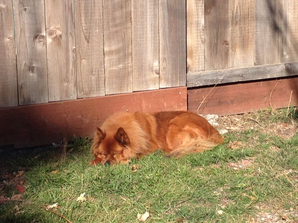 Test:用手机直接发图--躺在太阳里懒懒监督老妈做yard work