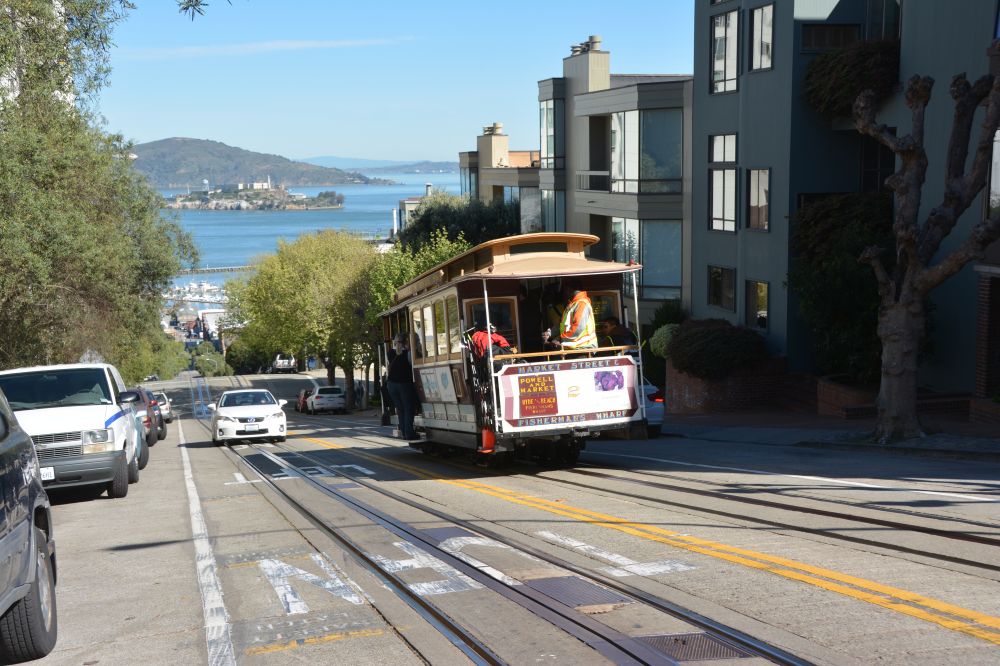 第一天选不开车路线,可以从联合广场出发,乘坐旧金山的城市标签-铃铛电缆车(Cable car),乘坐Hyde线先到九曲花街下。