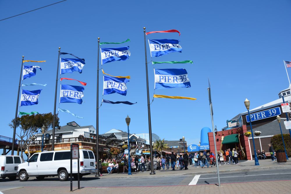 游 渔人码头,你可以从47号码头开始,这里有金门大桥建之前的101号公路的摆渡船参观点,还可以远距离看金门大桥。之后的45号码头也很值得参观,里面有 最早保留下来的游戏设备,想想早期的贵族只能玩如此简陋的游戏机,现在的你手拿着iphone心里不知有多平衡。渔人码头的精典当然是39号码头啦,写到 这我还想起我上一套住房的门牌号也是39,备感亲切。我选择在39号码头买游船票坐游船,购票后离开船时间有一个半小时,正好可以沿整个码头走一遍。这里 商家林立,小吃也多,最难忘的是那些聚栖在码头的海狮,是这些码头中独一的景色。