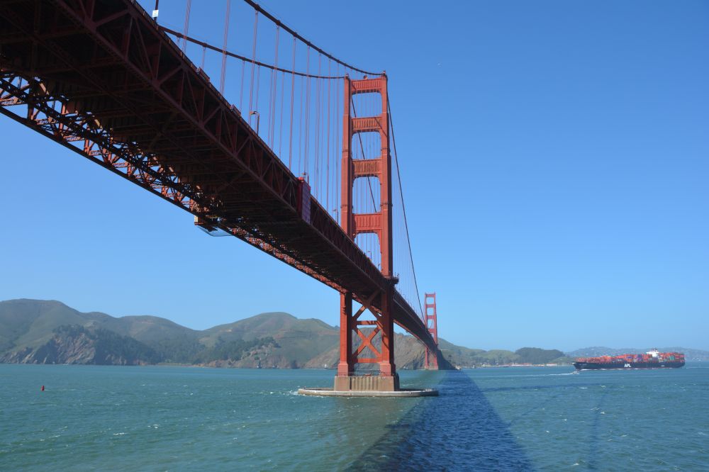 本以为游船是很悠闲项目,但旧金山的游船还是由于风大浪急,游船摇摆较利害。而当你近距离回望旧金山城,穿过金门大桥底下,你的激动又早己忘掉了游船摇摆的不适。游船之后我建议你在渔人码头吃个海鲜歺,旧金山的螃蟹还是很出名的。