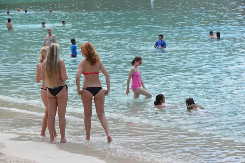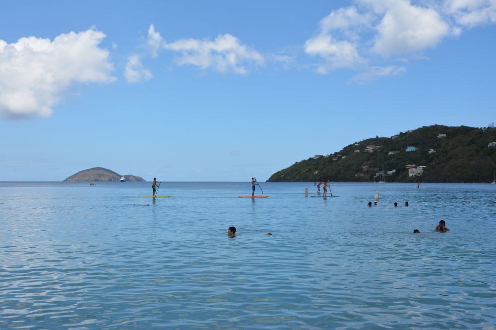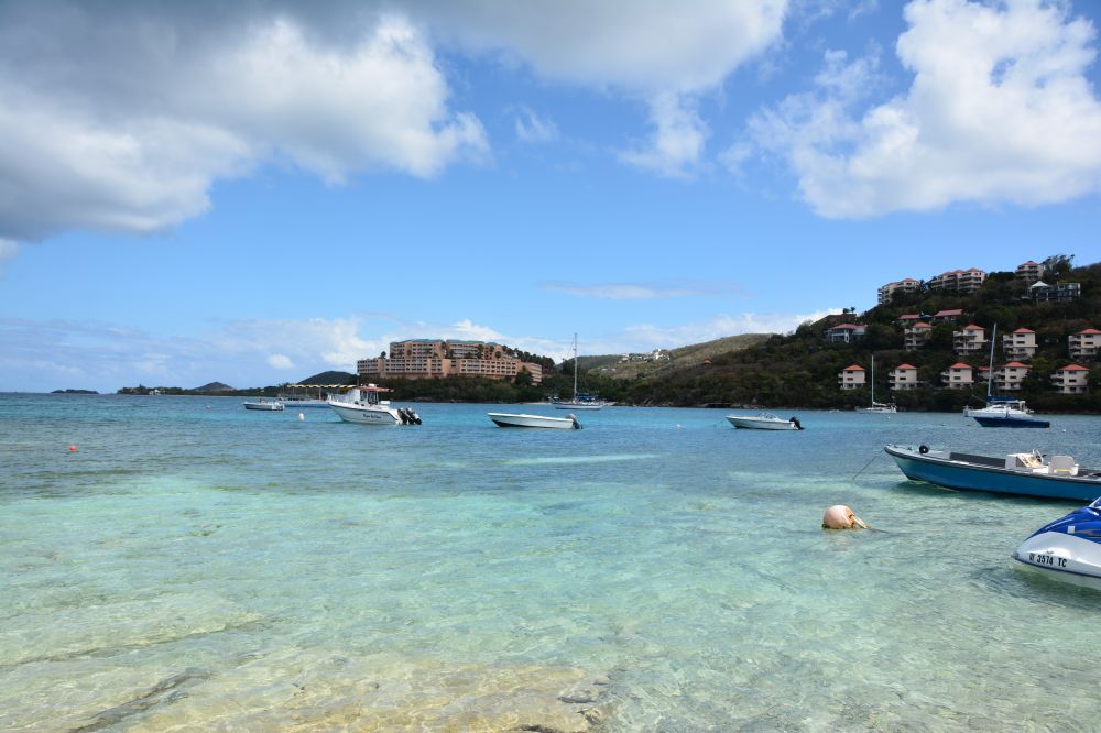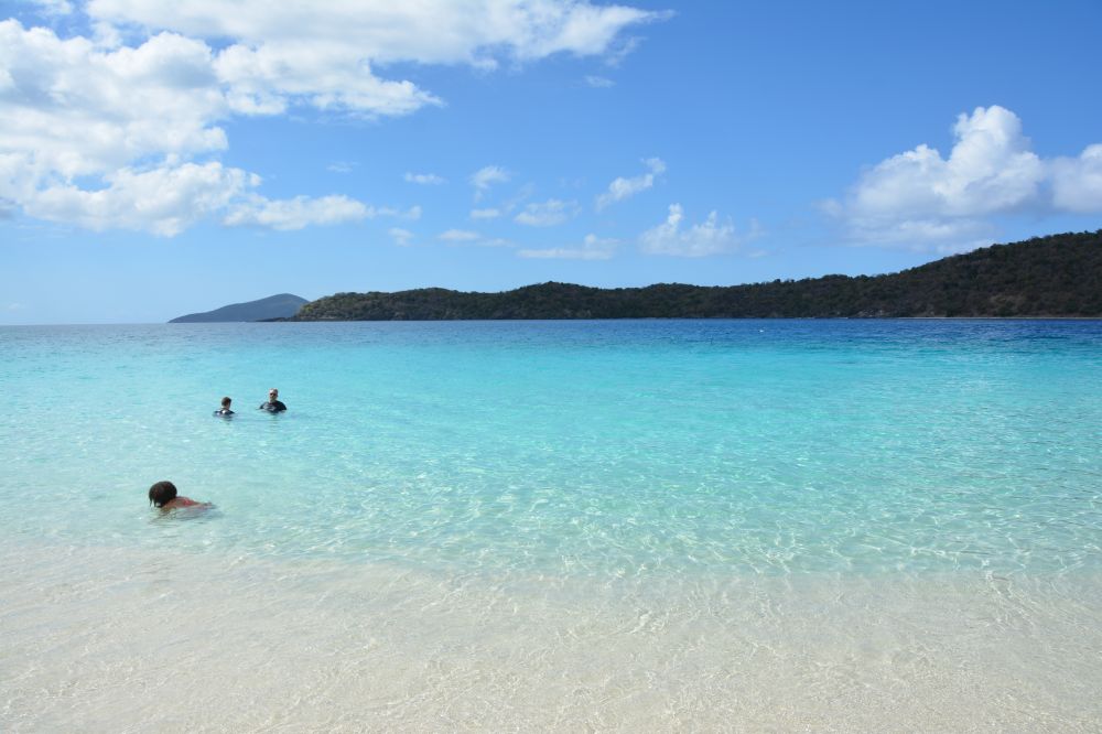 一路35号山路直达Magens Bay,到了这里让我确信它评为世界最美沙滩是有道理的,细白柔软的沙子加上洁净剔透的海水,阳光照在上面耀出鳞鳞波光,绵延的海岸线在不远处绕了个弯,将整个海滩呈现出个巨大的心形。就是如此美丽的沙滩,在我太太眼里还不如我们酒店的沙滩。当然这主要的原因是人太多,碰巧今天有二艘巨大的游轮到港,而游轮游客又几乎必到Magens Bay。