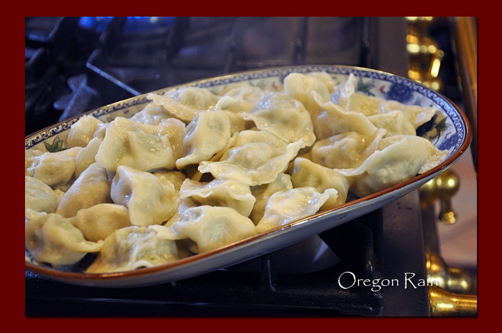这是主角: 三鲜水饺。 饺子通常是我们家的方便食品,冻箱中必有的食品,也是我们家的紧急食品。爸妈回国前包了好多好多饺子。就是为了方便我们。告诫我们在他们回来之前一定要吃完。。。