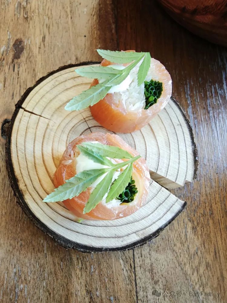 卷内填有芝麻菜(roquette)和芥末调味的馅料,还加入了少量风干牛肉增加风味。