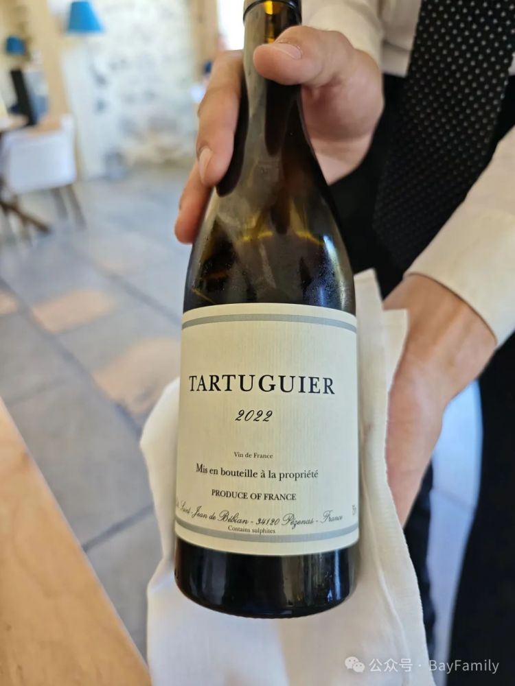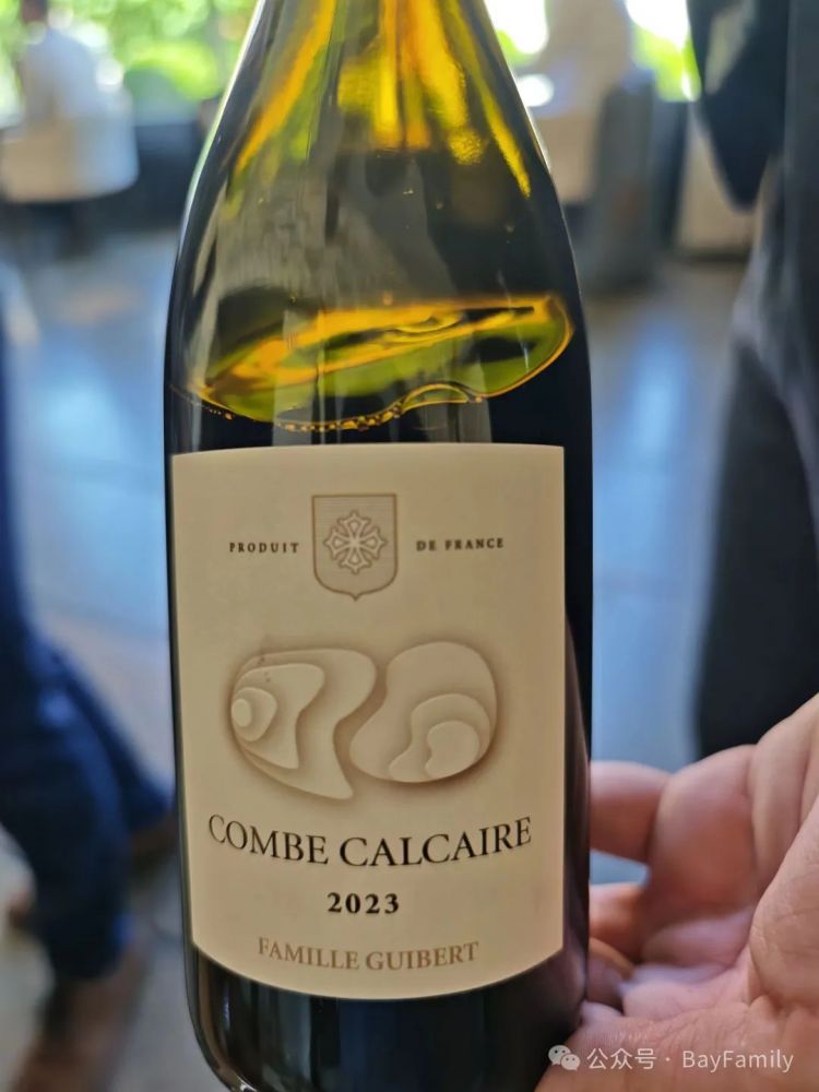 正餐配的酒是这个。这款酒来自Guibert 家族,他们是著名酒庄 Mas de Daumas Gassac(多马斯·加萨克酒庄) 的创始人之一。他们的第二酒庄 Moulin de Gassac(加萨克磨坊) 出品的一款红酒,名为 Combe Calcaire(石灰岩山谷)。它所产自的土壤富含盐分和石灰质,导致他们的酒酸度略高。