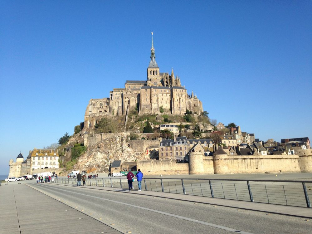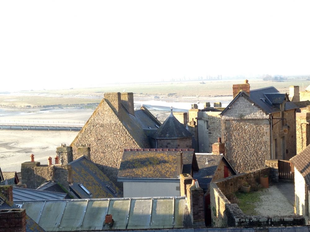 吃完早餐,我们就沿着城墙来回,沿着后山上山顶观赏拍照。那是没有别的游客与我们分享,偶尔有几只飞鸟看着我们,直到将近中午时分,旅游团队开始进来了,我们也需要走了。再见,Mont-Saint-Michel!