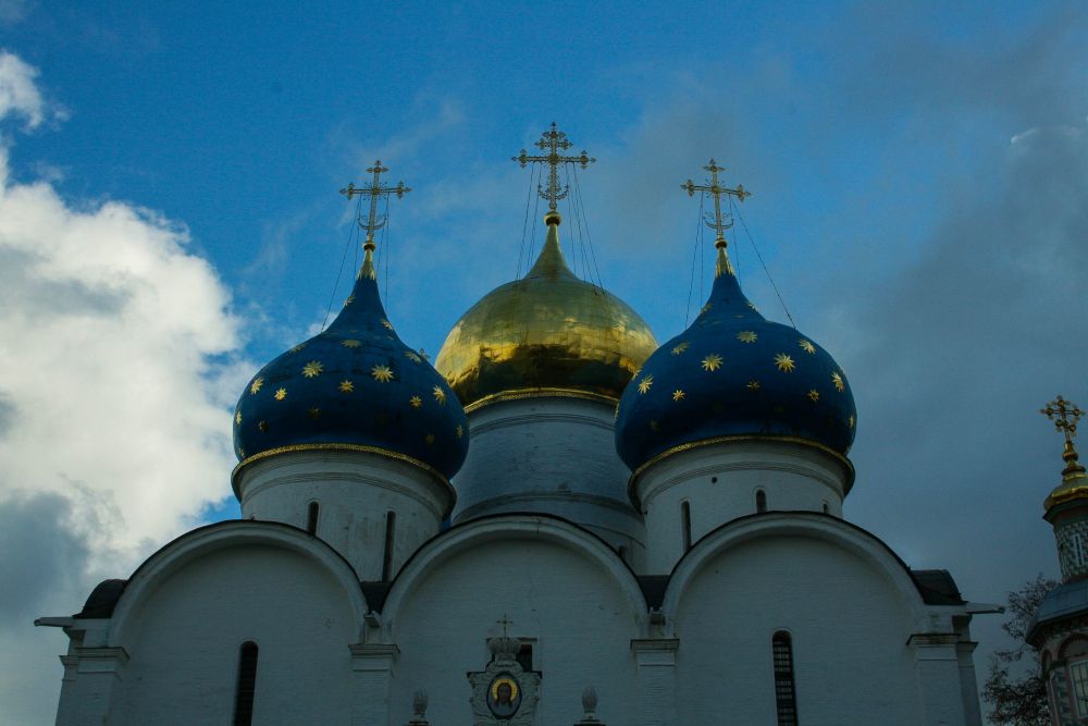 最后一天随导游到了莫斯科郊外的金环古城-谢尔吉耶夫镇。据报道,谢尔吉耶夫修道院是东正教最古老的教堂之一,收藏着无数古俄罗斯绘画精品、贵金属和宝石古董.这是由圣三教堂、杜霍夫教堂、圣母升天教堂、沙皇宫殿和88米高的钟楼等组成的又一个的漂亮的建筑群。随处可见身穿黑衣的修女和神父。