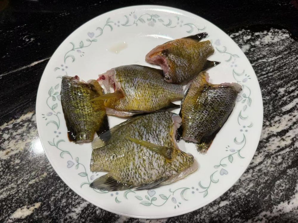 这Bream几周前一个虾就轻松钓13个,那个隐秘的地点被老墨看到,结果最近两周钓很少,怀疑是不是被钓完了?只是怀疑不能下结论。今天也只钓了几条,留了三条小的用作钓鲇鱼的鱼饵