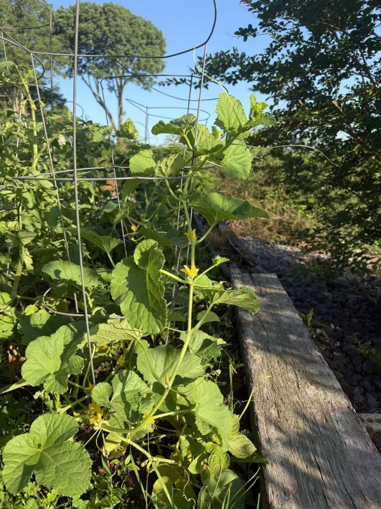 广角全景,菜地周边是石头,我用鱼线左边围住了,鹿是警觉的动物,触碰到了会小心的避免,目前还没有鹿的威胁,