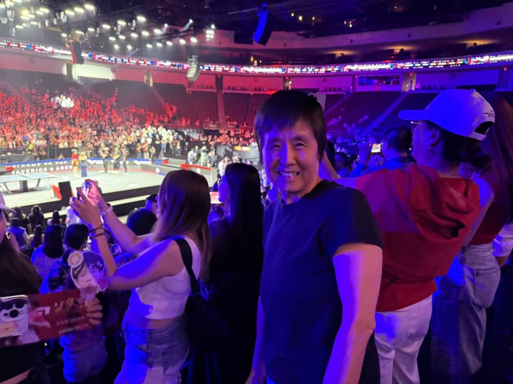 这次美国乒乓球比赛网站做的比较差,比赛有两个场馆,网站上没有场馆信息所以你可能去错了馆没有看到你要看的那场球。微信的wtt软件小程序就有很好的说明,场馆时间都非常清楚,比赛的进程也及时更新。发现微信的小程序里面还有很多好东西譬如全民K歌等。主馆是1号球台,付馆234球台是一个临时搭建的大棚条件比较差。我们第一天为了看王楚钦去了那里以后都去了主馆,LD是王的粉丝,但4号桌看他的比赛的人太多,这里就是平地摆放一些椅子后面的人看不到前面。我们实际选择看2号桌,我更喜欢看大长腿Hina Hayata和蝴蝶结Shin Yu-bin,这次在2号桌也意外的LD有机会和林仲勋合影,林很争气后来拿了男双冠军和混双亚军。练球期间就有不少球员抱怨场地打滑特别是付馆,王楚钦夺冠后的采访说开始不太适应场馆也是暗含批评之意