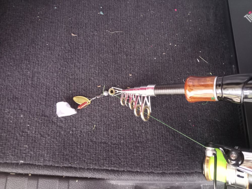 周五刚到就去钓鱼,我和另一位常钓鱼的顺流甩杆,各自只钓了一条,另一位不常钓鱼的朋友G却连续上了好几条,第二天上午的情况也是如此,经过考证我发现了秘密:我们用power bait做饵料,大约2英尺的位置用一个铅坠,正常情况饵料应该飘在离河底部1英尺左右,但是因为河水流太急,铅坠没有沉底,饵料飘在河面,而朋友G横向抛线,用了较重的铅坠,铅坠在流动过程中一般会卡在河底水草达到沉底目的。改进方法后周六傍晚我和我家LD也钓到了好几条鱼。不过水草太多很容易挂满鱼钩和铅坠需要常清理麻烦,我也尝试了各种鱼饵,发现金属钩也能钓到鱼且方便不用换鱼饵,只不过水流太急我需要一个小铅坠,周日走之前早上发现朋友有我需要的小铅坠,这样甩杆更远,鱼饵也会下坠一点特别好用,我边钓鱼便清理,时间不长就有4-5条,非常高兴找到了最好的方法!鱼不是目的,钓鱼的过程才是享受,给大家看看我的 jig spinners(鱼钩被我用胶带包住以防挂)用这种水面金属钩比那种沉底的用power bait方法好玩太多