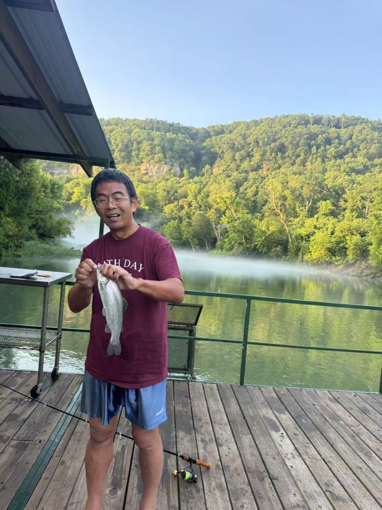 阿肯色州的小红河(Little Red River)是全美鳟鱼(rainbow trout)垂钓者的首选地之一,1992年有人在小红河钓到当时世界最重的鳟鱼40磅。周五下午和朋友一起驱车一个半小时去小红河边的民居过周末