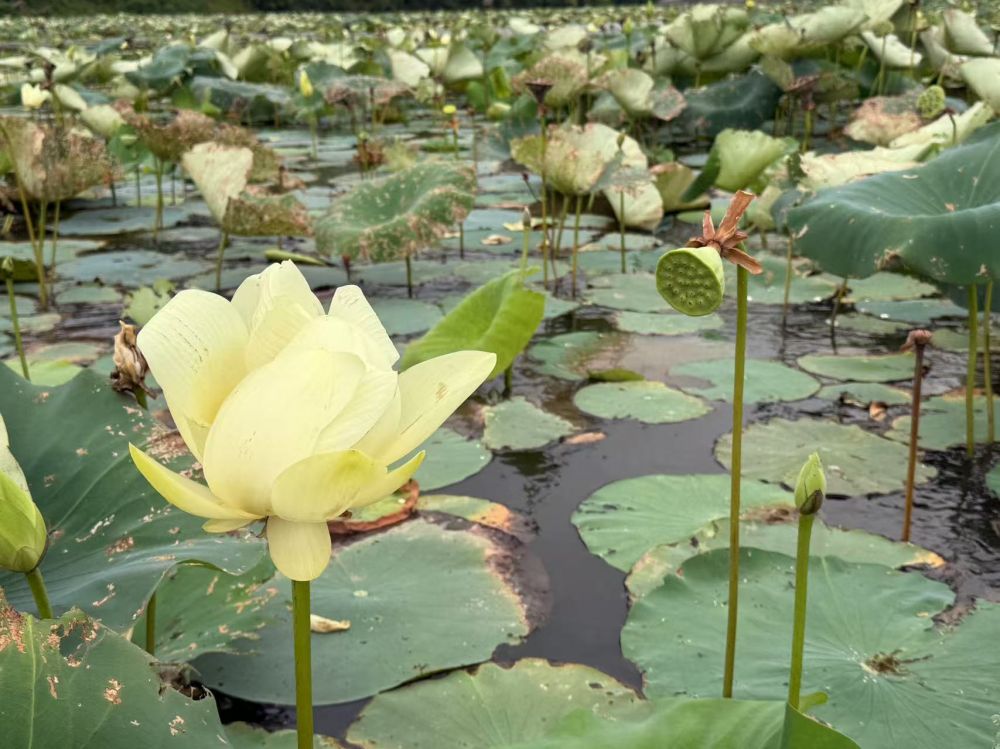 远方可以看到她家的池塘,在那里我钓了几条鱼