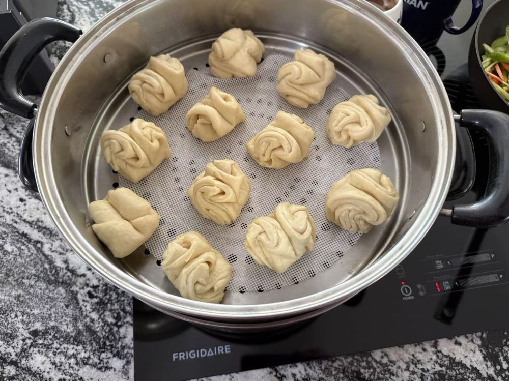 我把水烧热关火放15分钟继续发面,开火水烧开后大约10分钟,关火约3分钟开盖子