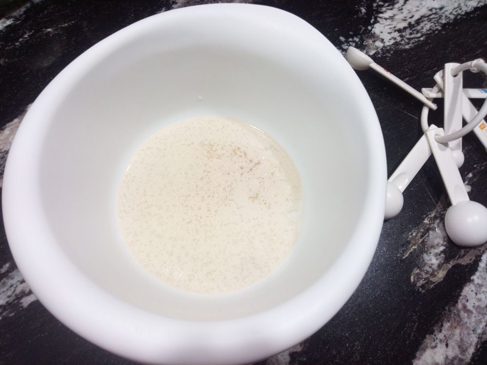 花卷制作,一杯水一茶匙酵母粉搅动化开