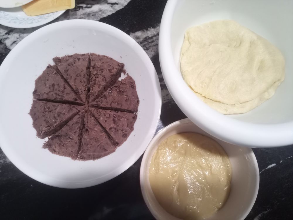 另一包豆沙做酥饼馅料,分成8份,浅浅的馅料少太多