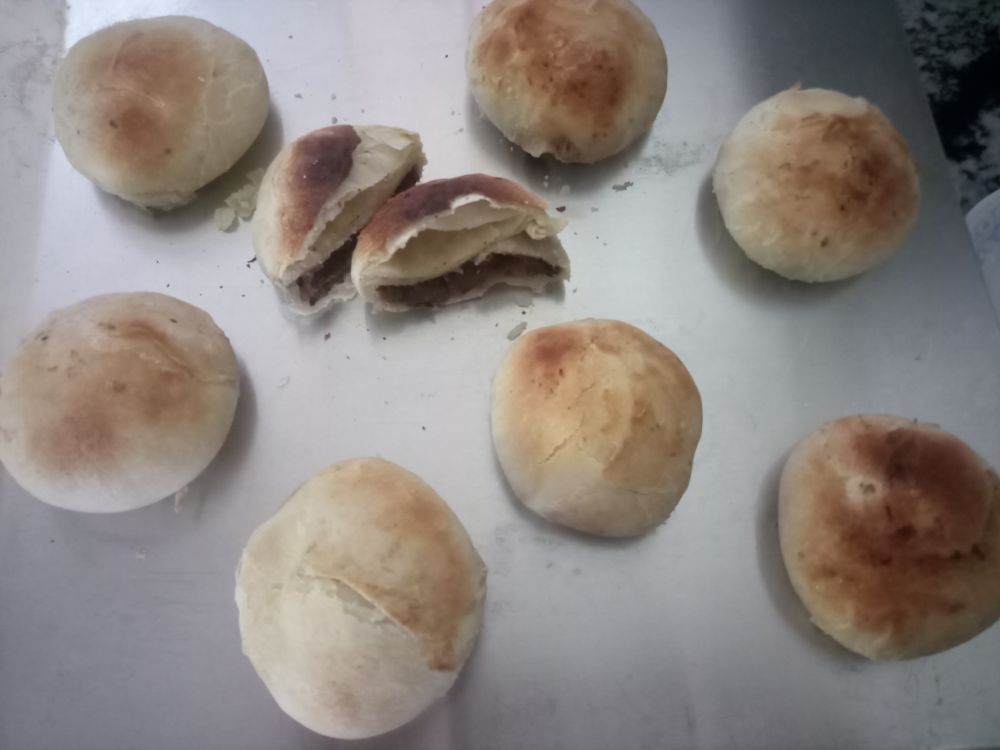 烤出来鼓鼓的,好长时间没做了忘记中间弄一个洞放气