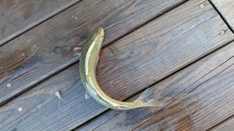 周日天气转暖,上午退房离开前抓紧时间再钓几条,总共还是只有上次36条的三分之一