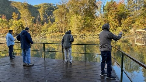 Little Red River是美国著名的鳟鱼钓鱼景点,第二天去参观了鳟鱼养殖基地,这条河的Stocked Trout就是这里来的,鳟鱼放河里的时候是Catchable一般是10到12英寸