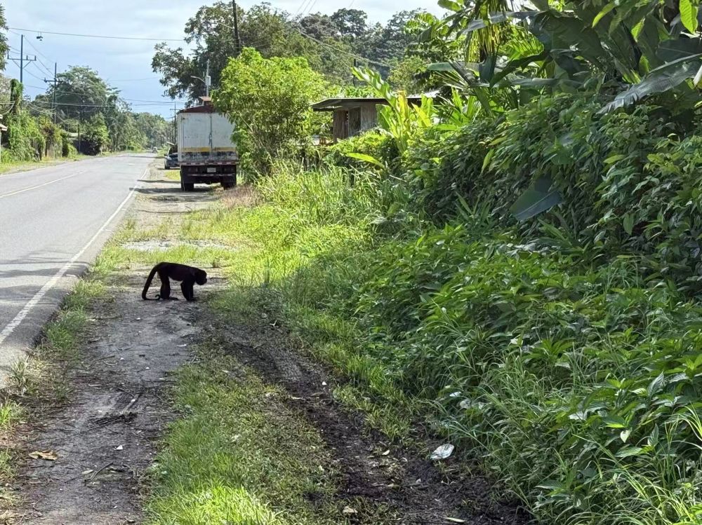 河边树林也看到了体型不大的黑猴子,这是去香蕉园路边看到的猴子