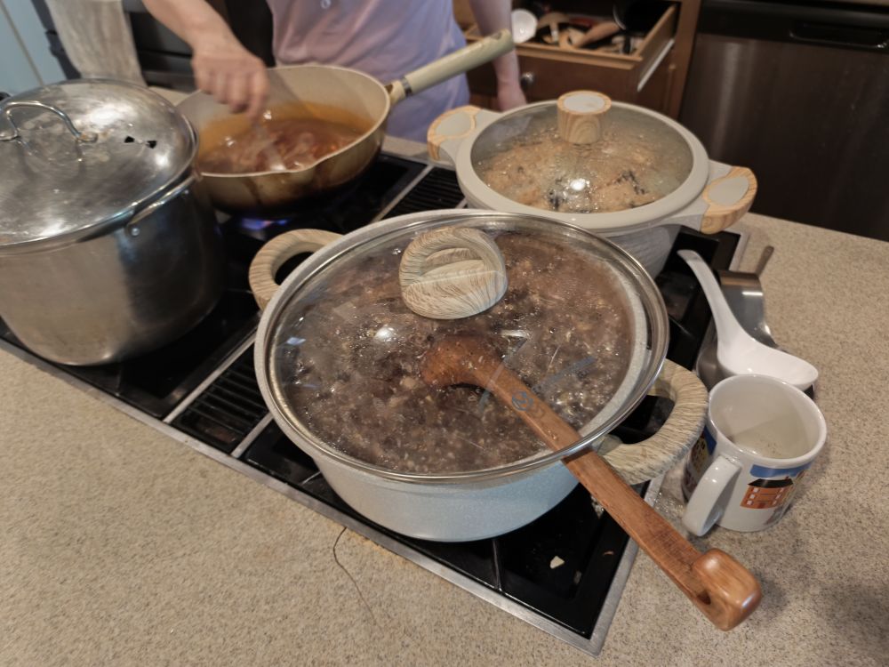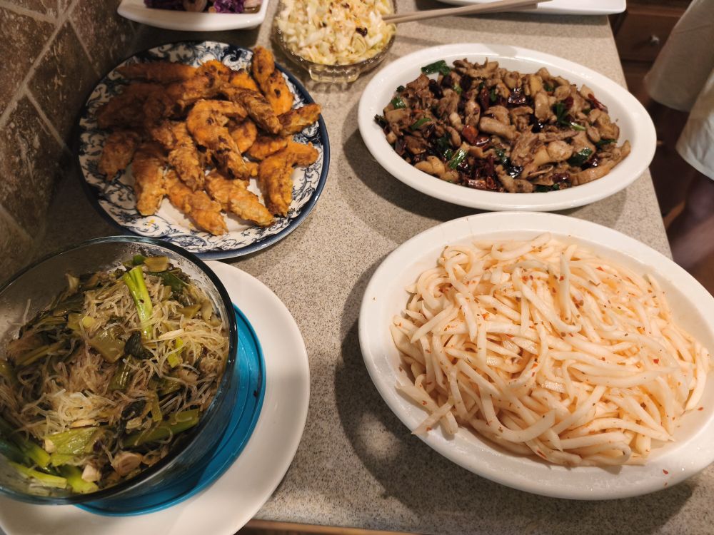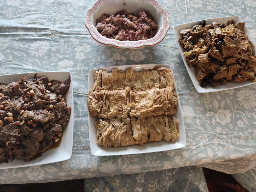 我爱吃豆制品和粉蒸肉熏鱼,朋友的熏鱼是Walmart没有刺的鱼做的也很好吃,这里只拍了部分因为他们还在忙呢
