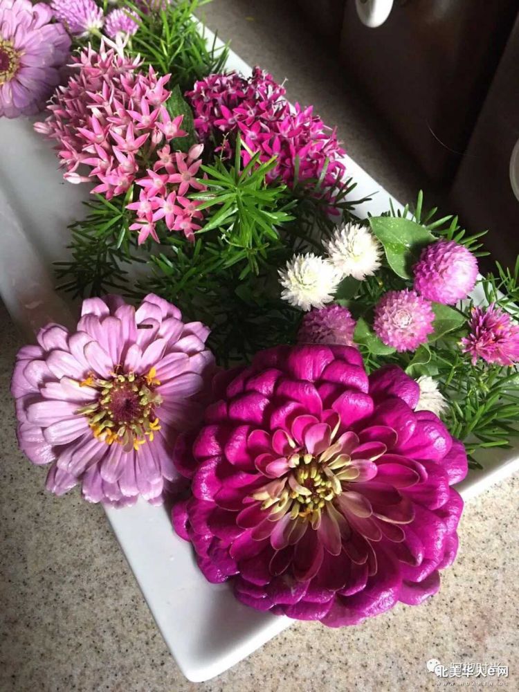 插花集(2)-浅盘摆花及示范视频 越来越喜欢用浅盘摆放院子里采的鲜花,换水容易,不用挪动花花,摆置也比瓶花容易,不需要使用固定花枝的绿海绵或者插花针座。简单方便。天门冬枝条做盘花衬叶绝佳[强],松柏枝也很好。 中间五星花,上角千日红,下角百日菊 粉红五星花,紫色铁线莲,白色接骨木花,紫锥花 百日菊+水杉枝 下面一组这是两周[阅读全文]