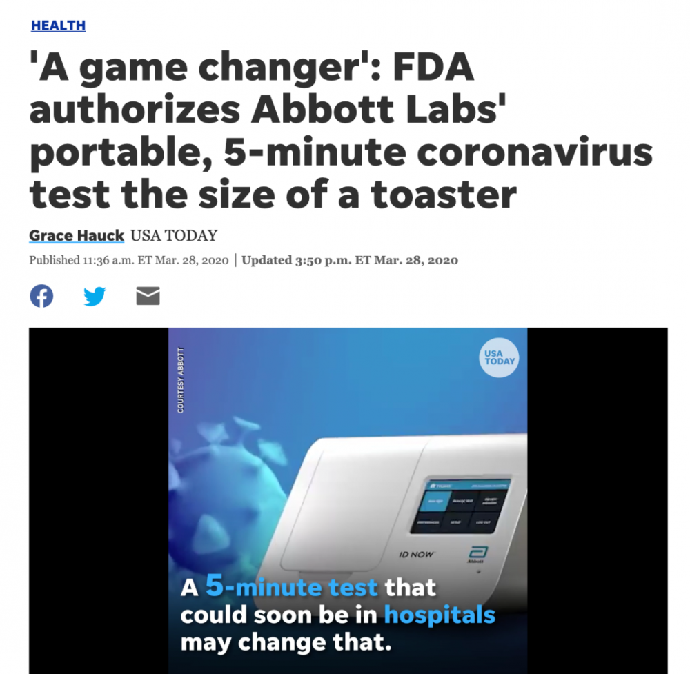 这里,我还想提及一个美国社会整体左倾化的一个问题。现在的美国民主党(左派),越来越趋向于喊空洞的政治口号,而办实事的能力则愈发退化。例如,面对肆虐的疫情,纽约州州长依然强调:“大麻合法化”是本州的工作重点。而身为“准共产主义者”的纽约市市长 De Blasio,则更夸张。除了高调推进“种族平等”和几十种性别(性取向)高度意识形态化的政治议题之外,在防疫工作上可以说是一塌糊涂。早在2月中旬,他还指示他的公卫官员向外释放乐观情绪:纽约人,我们的准备很充分,风险很小,你们没有理由不去酒吧...无论是出于对川普的憎恶,还是出于自身的无能,反正是:只要是民主党控制的深蓝州,基本上都是疫情最为严重的州:纽约州、新泽西州、加州、麻州、密西根州、伊利诺伊州、华盛顿州...同为人口大州的德州和佛罗里达州,他们都是红州(共和党人控制的州),疫情就好很多。佛罗里达州也是如此。这其中的差异,可能并非偶然。问题在于,这个疫情恰恰是美国这个巨人的阿基里斯之踵。这是美国这种大社会、小政府、自由市场的最大软肋。美国社会把人的自由放在一个至高点,政府承担的职能有限。中国人民把政府当作“青天老爷”,当作照顾人民的大家长;而美国人民则把政府当作类似物业管理处的存在,对政府的期望极其有限:你少来烦我就行了。美国这种体制的优势是,人民有自由,法治有保障,国家的创造力很强,自由市场经济很强大。但面对防疫这种需要全社会动员的事情,美国的确很弱,民主社会启动的确也慢。相信这次事件过后,美国社会将进行反思和自我改良。和中国一样,美国也一直是在一部200多年前成文的宪法之下,摸着石头过河的。期间美国经历过南北战争,1920年底的大萧条,两次世界大战,1960年代的民权运动,2000年的互联网泡沫破灭以及2008年的金融危机。套用中国一句古语:多难兴邦。总体上我还是相信美国的自我修复能力。实际上,通过这次疫情,我们还是能看到美国的动员能力。在初期美国疾控中心几乎毫无准备的情况下,到今天为止美国已经累计完成了接近100万个测试,超过了同期的中国和韩国。其中值得一提的是美国的生物检测仪器公司Roche和Abbott Laboratory很快开发出快速检测设备,为大规模检测提供了物质基础。