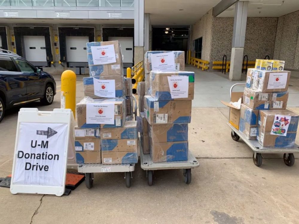 今天小缪代表我们密西根后援团向密西根大学医院捐赠了七箱800件防护服,1000多个N95口罩,还有20个护目镜。这是抗疫一线医护人员最需要的PPE(个人防护用品)三大件。这可以保护多少生命!