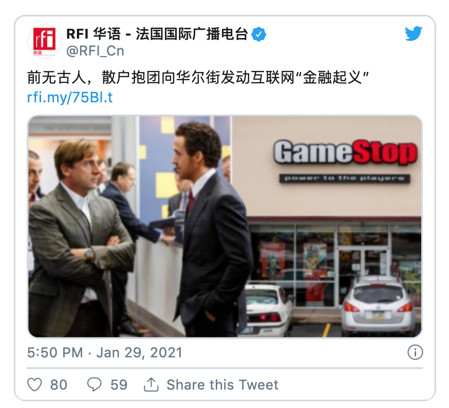 投资游戏驿站股票的呼声则得到了大规模相应,散户们以集体大规模的方式,指定抬高游戏驿站的股票价格来“轧空”,也就是快速抬高股价,使做空投机者们不得不以高价买入,从而获取暴利。这些散户们在通过互联网抱团后,诱使那些下注的大型对冲基金落入圈套,后者本想做空游戏驿站股价的企图因此并未得逞,而且还遇到了一场前所未有的“金融起义”和没有硝烟的阶级斗争后所带来的巨额损失。华尔街精英们长期对资本市场的掌控也让这些散户们在这次的革命中喊出了,“王侯将相宁有种乎”的呼声。