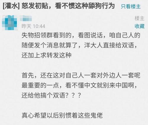 这两天,一个失物招领,在成都电子科技大学的校内论坛上闹得沸沸扬扬,只因为拾取者使用了中英双语,就被部分校友戴上了“崇洋媚外”的帽子,甚至性别也被默认为“女生”。