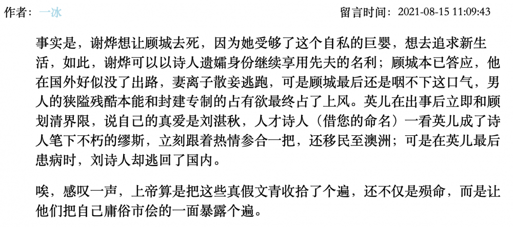 她毕竟是个聪明女人,很快便醒悟不妙,立即删去家庭幸福美满,云云;只剩下骂我的话了。
