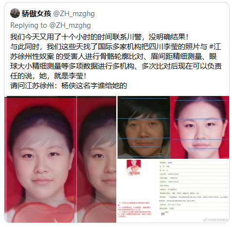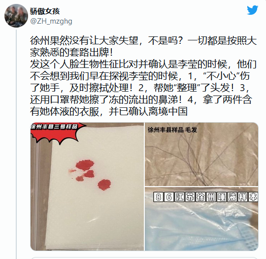 “骄傲女孩”说:1,他们已经安排了微博、微信公众号等各大平台的营销号,彻底否定“李莹”说,并说网上的那些图片进行了修复,不可信!2,他们拿的是小花梅的DNA与李莹母亲做的比对,而并没有提取现在还在医院里李莹的DNA与李母进行比对。3,与四川方面配合公布:与李莹母亲DNA没有对上!4,召开新闻发布会,各大无耻官媒配合报道,彻底否定是李莹!