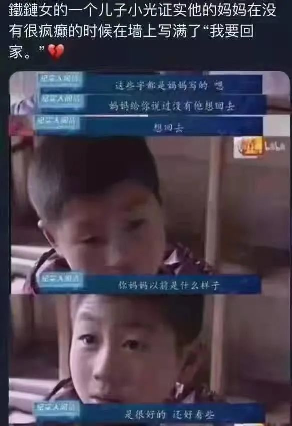 铁链女的一个小儿子曾接受抖音主播的采访,他爆料母亲曾在屋子内写满“我要回家”等字。所以,她的意志是清晰的,至少有能力证明自己是谁。为什么不给当事人一个证明自己的机会,而是将她与世隔绝,不让人接触呢?